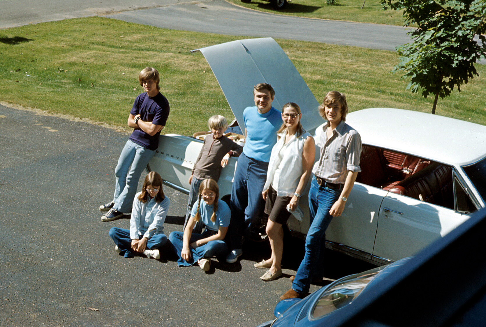 Their wedding became a focus for the summer, and my dad arranged a complex family summer vacation to attend this event. We numbered seven, and were no longer small enough to all fit into our Volkswagen bug as we once had. Nor could we fit in the large Pontiac Bonneville, later known as the Great White Whale, especially since we were bringing camping gear for Dad’s planned post-wedding vacation activity: backpacking through Yosemite Park. So both vehicles were recruited for the cause. We had four licensed drivers in our clan and could tag-team the drive to California and back.