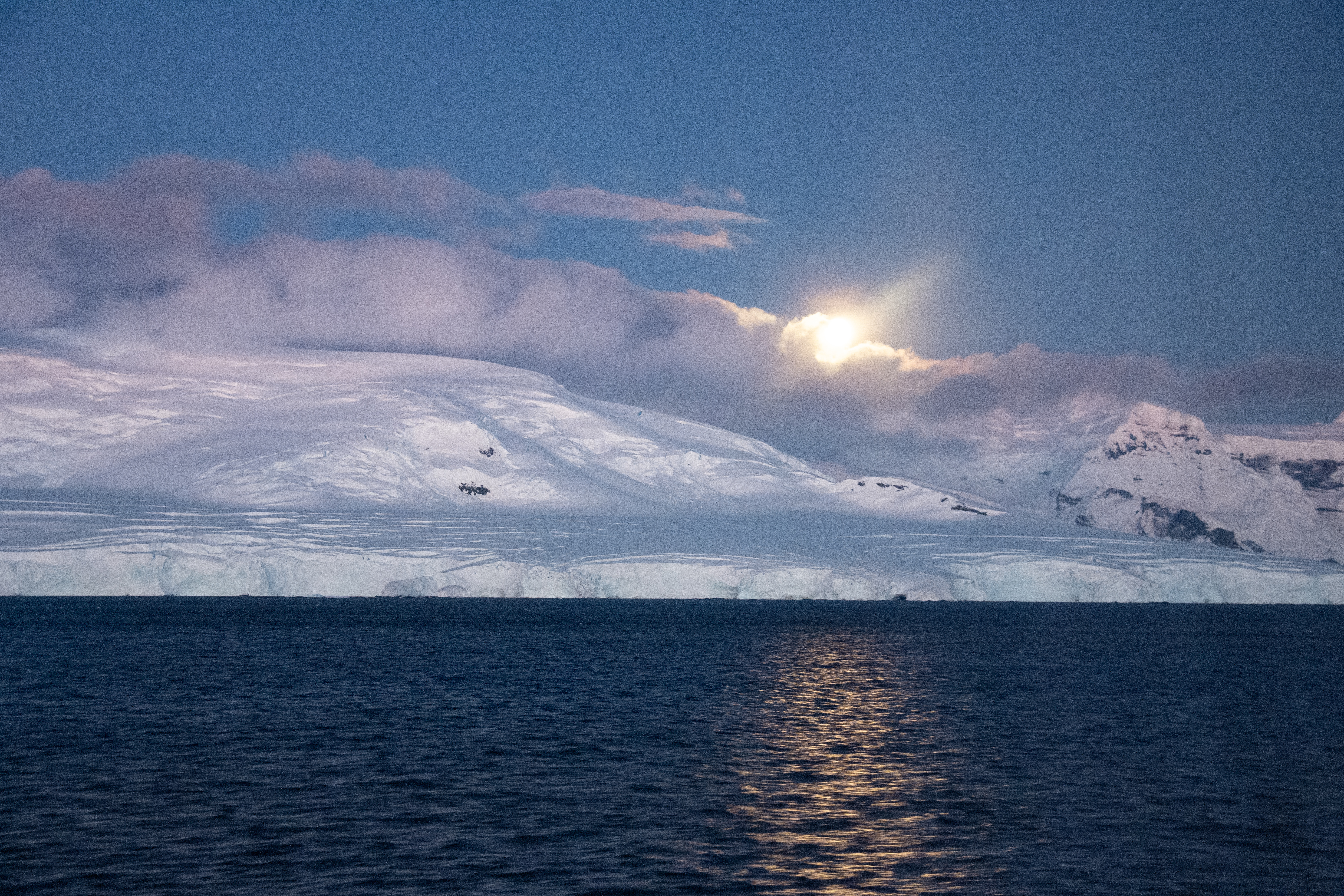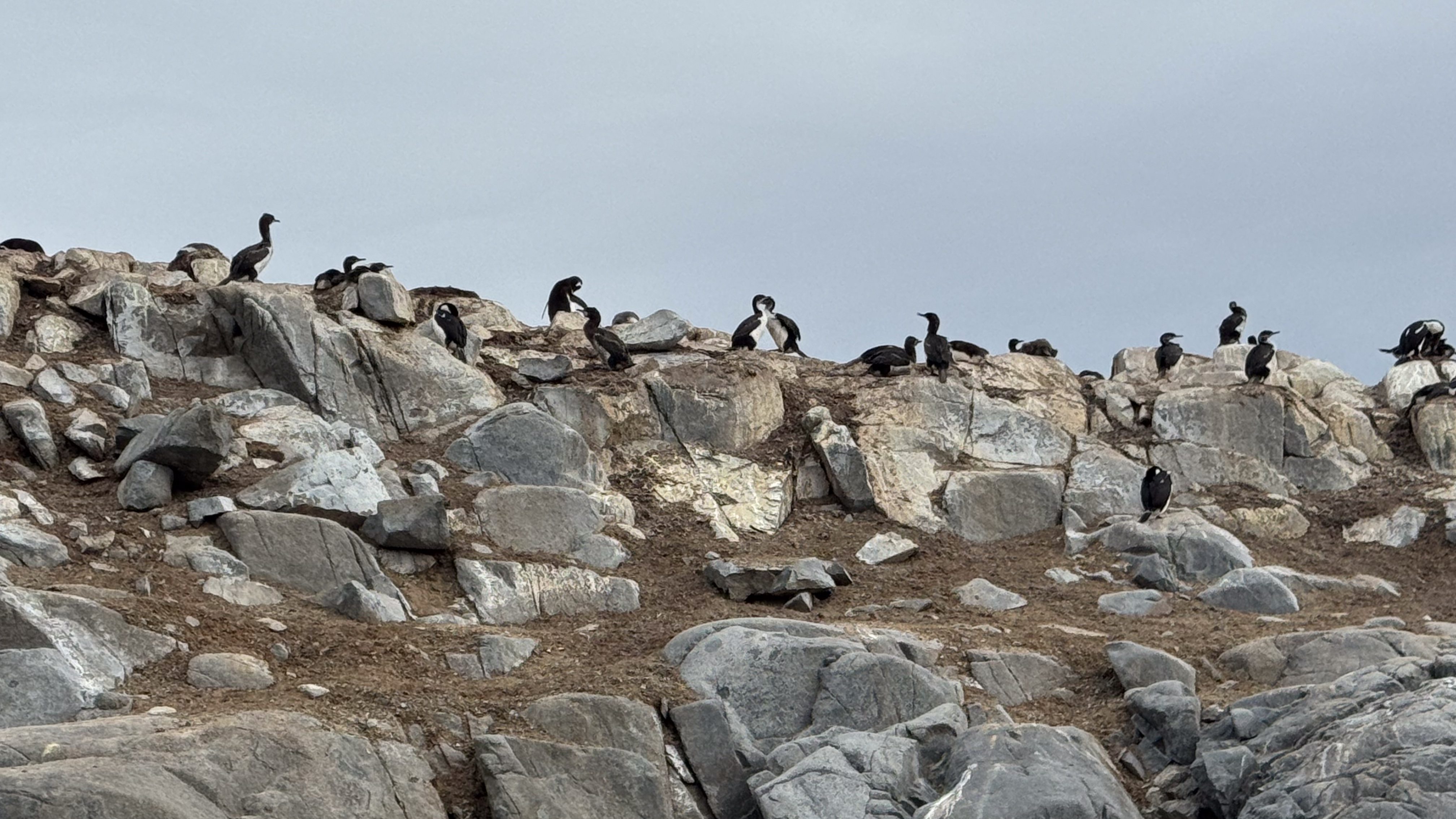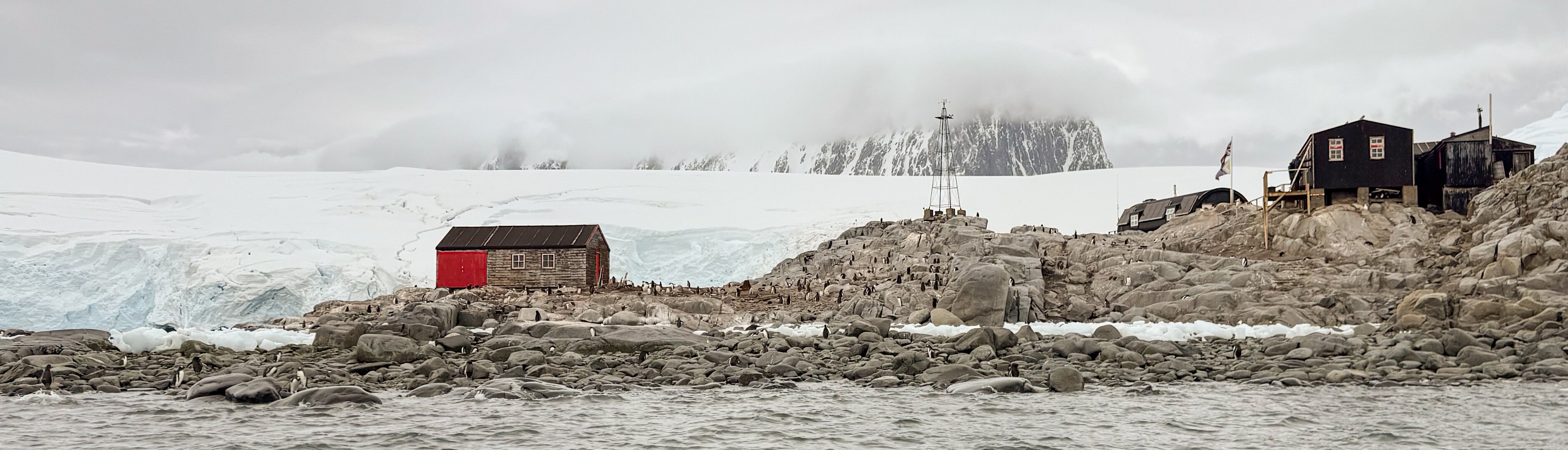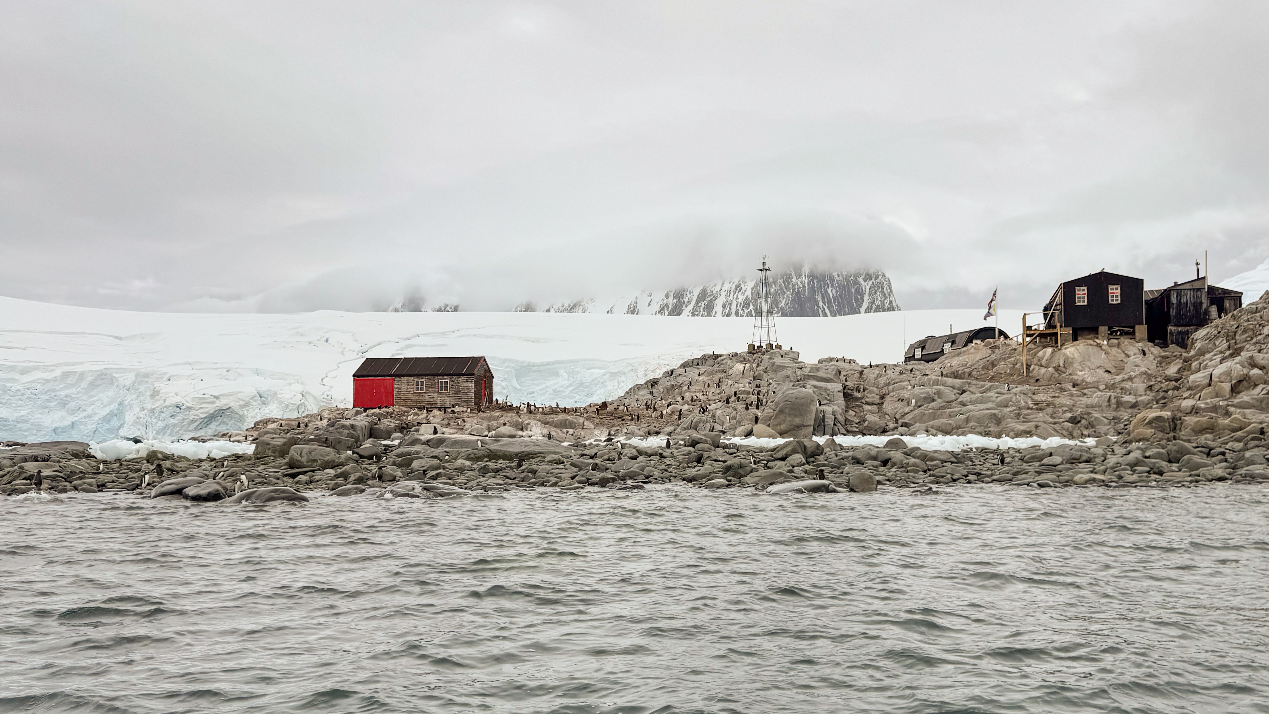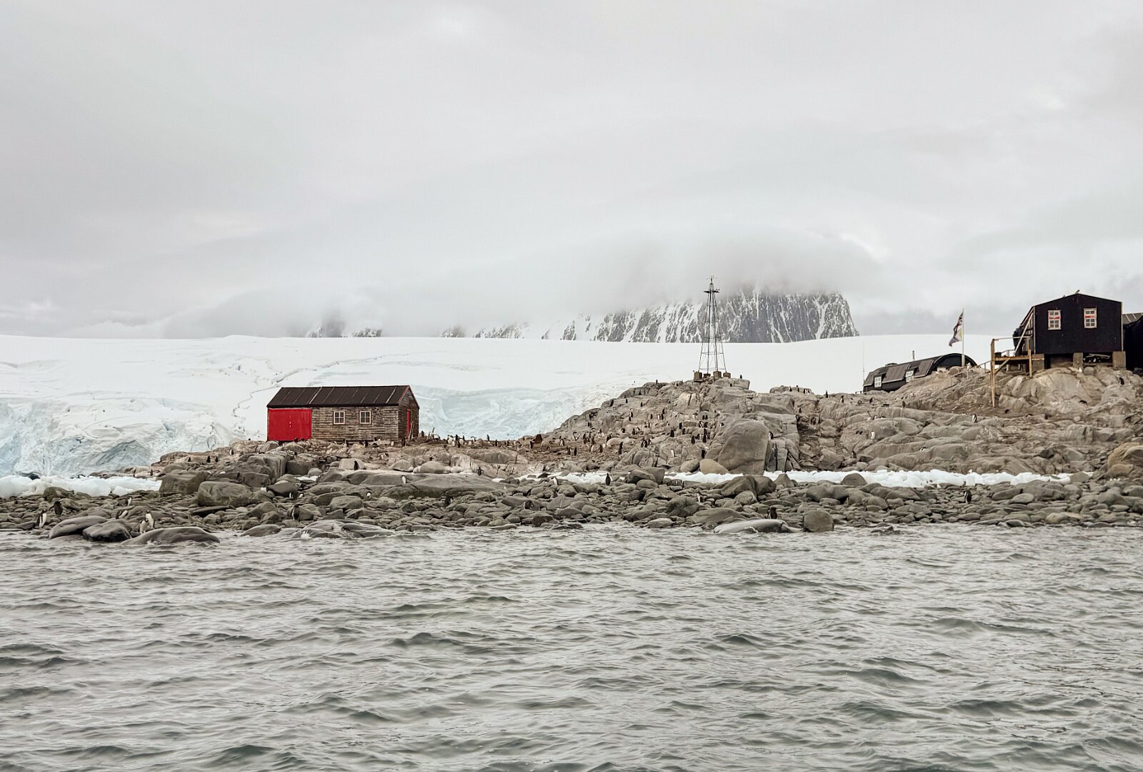 Port Lockroy is a research station that normally recieves tourist visitors, but today there are too many penguin chicks at risk. The research crew will visit us on the ship instead.