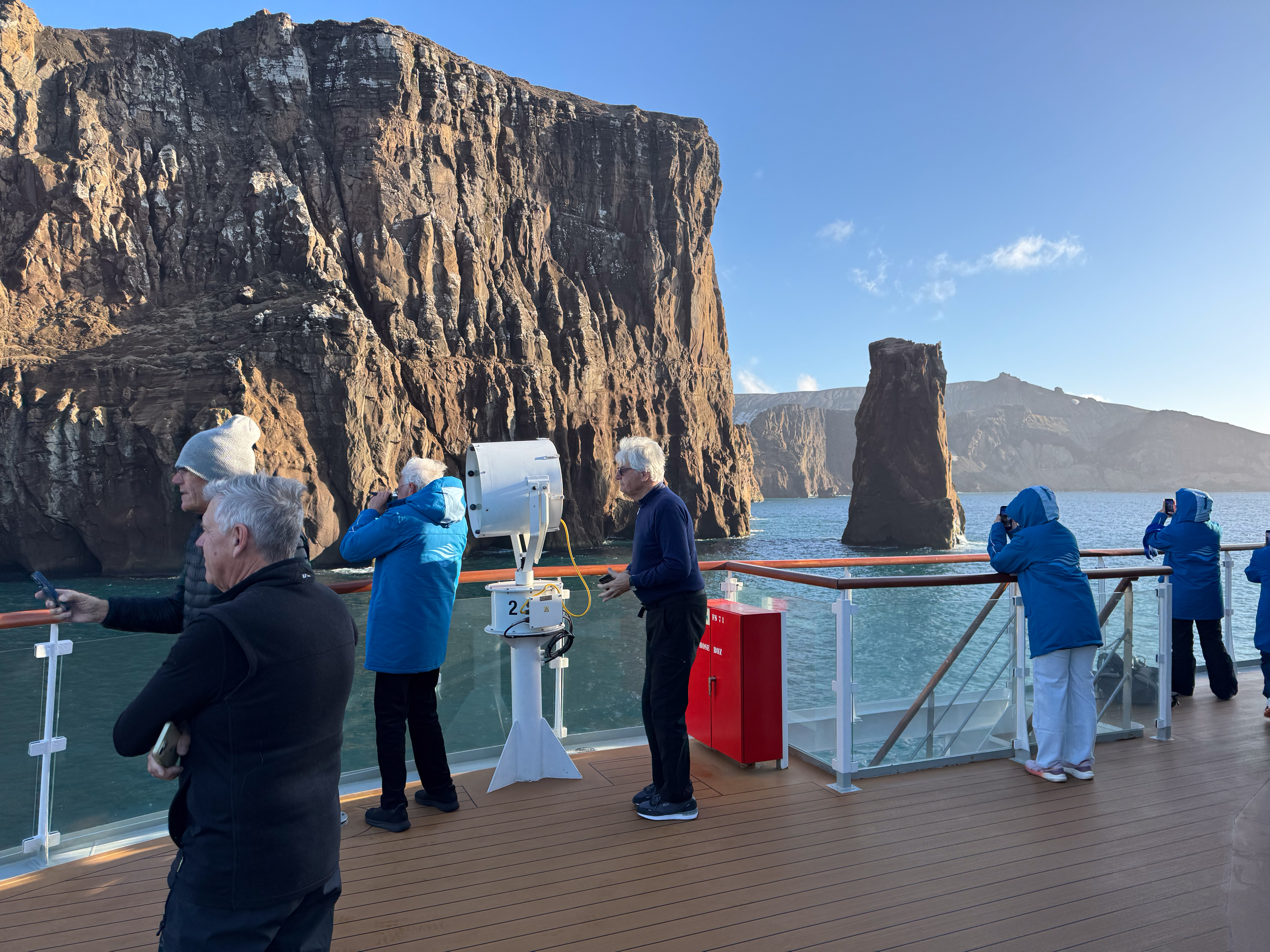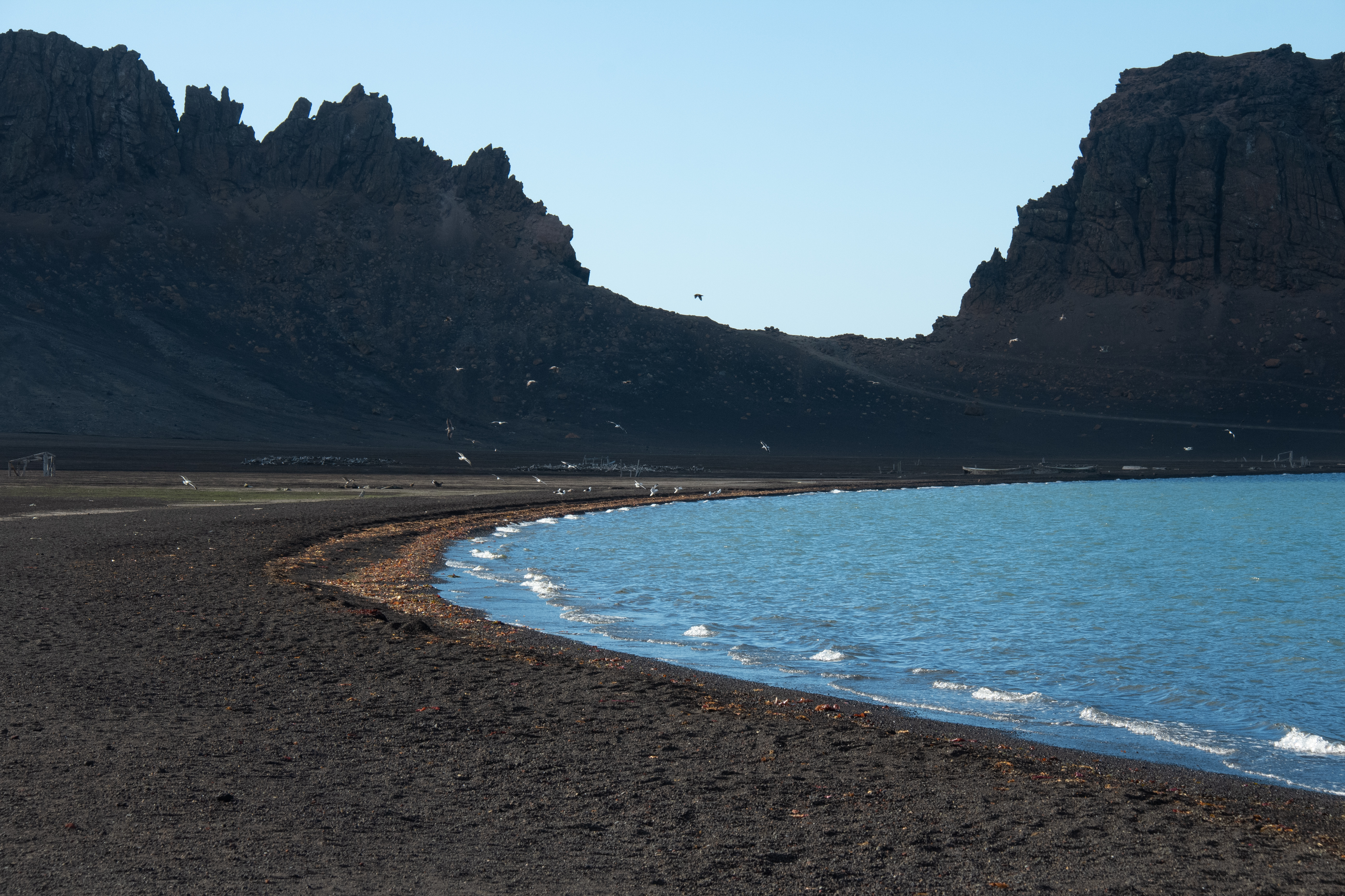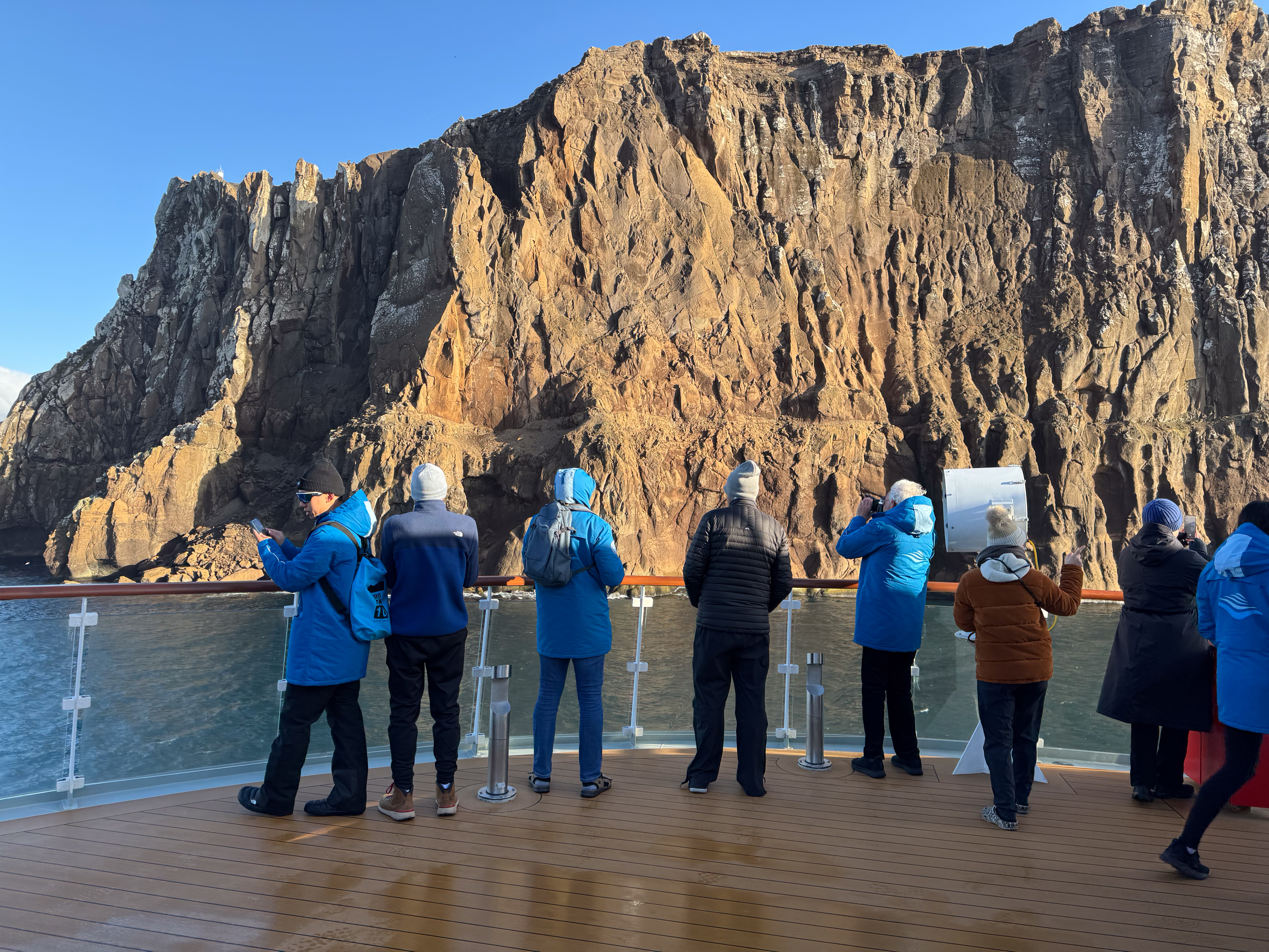 This is the darkest it will get tonight. The sun is 9-degrees below the horizon, but the full moon is 15-degrees up and illuminates distant icebergs and mountains.