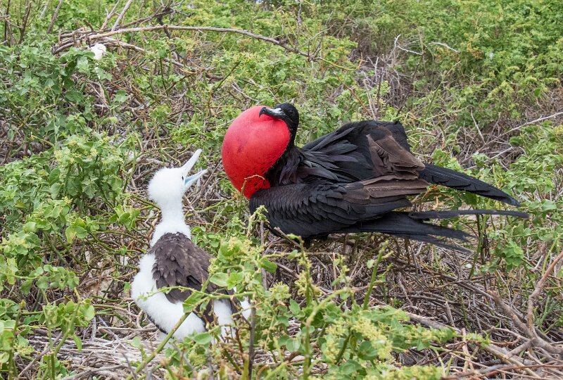 IMG 6940 MG 1622The lava rock path on tiny Wolf Island. MG 1625Frigate birds, a male with his puffed up red chest, and juveniles. IMG 6950A long layover allows us this view of the setting moon from the Quito airport. IMG 6935A wide view of the bay at Puerto Ayora, Santa Cruz. When we arrive at San Cristobal, we will be dropped off at the airport to start our way home. MG 1632 2018-12-08 Santa Cruz, Darwin Research Station