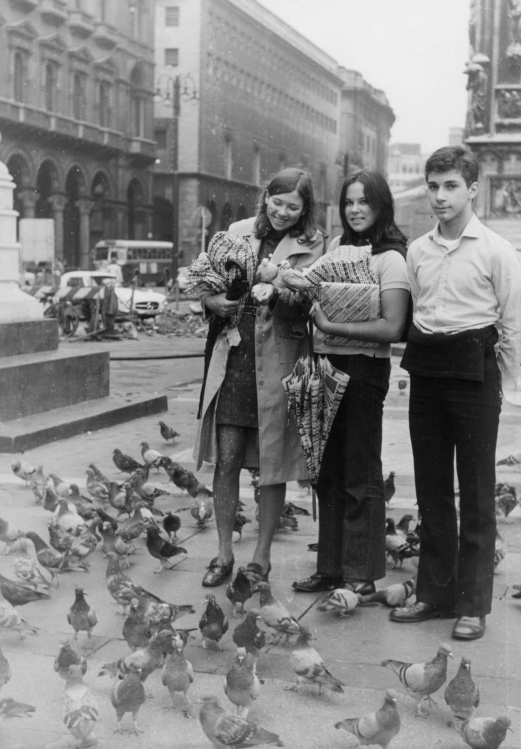 Poldi: During my senior year I was an exchange student and traveled to Italy to spend the school year with a host family in a town not far from Milan. It was an exciting time, and on a weekend in the fall, my host sister Rossella, her boyfriend Claudio, and I took the train to Milan to go sightseeing and shopping. A street photographer happened to take our picture, which I thought would be fun to send to my boyfriend Ned back home.