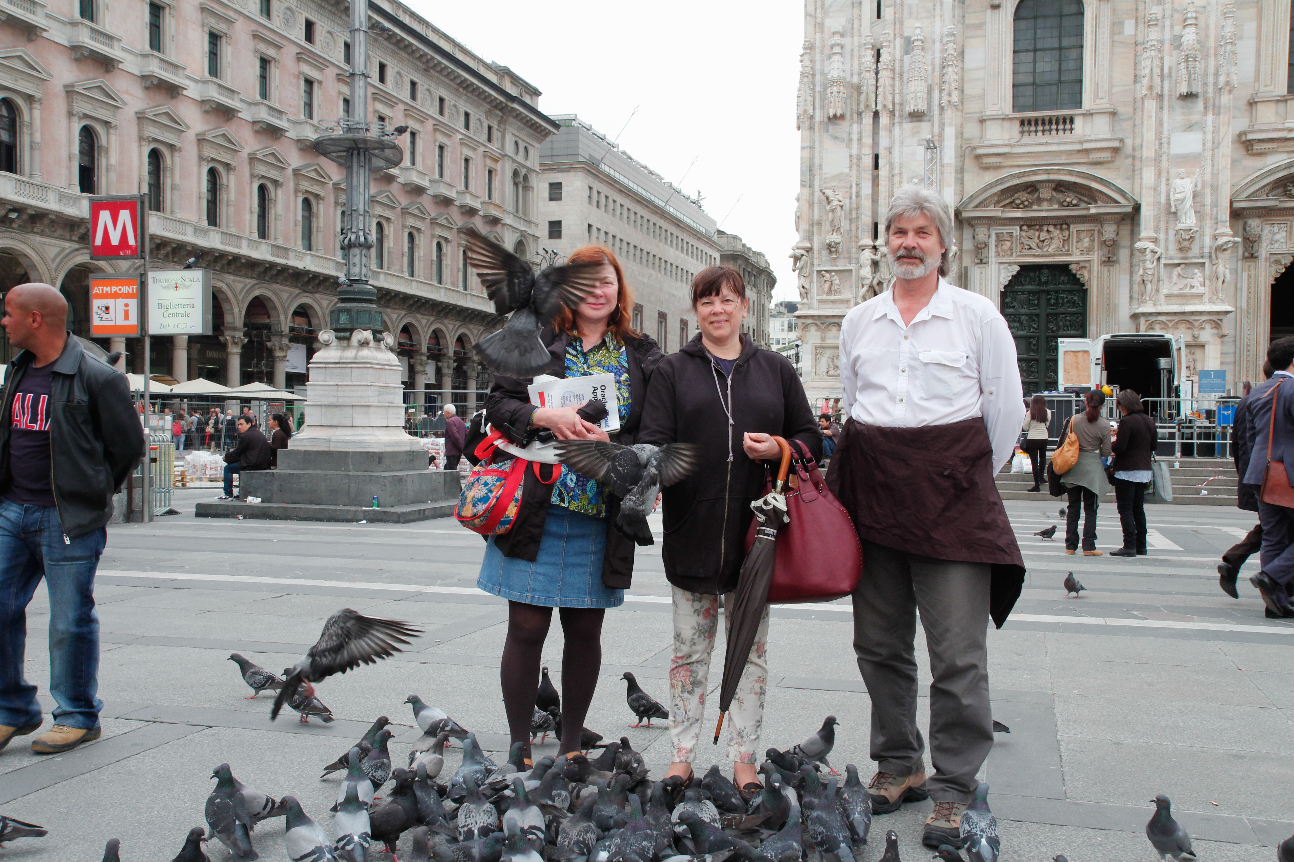 P: As you now know, life took us along different paths, and four decades later I am showing Thor the wonderful things in Milan, with my Italian sister Rossella that I have kept up with all these years. Thor still had fond memories of that photo, and thought it would be fun to recreate the scene in front of the Milan Duomo. And so we did.