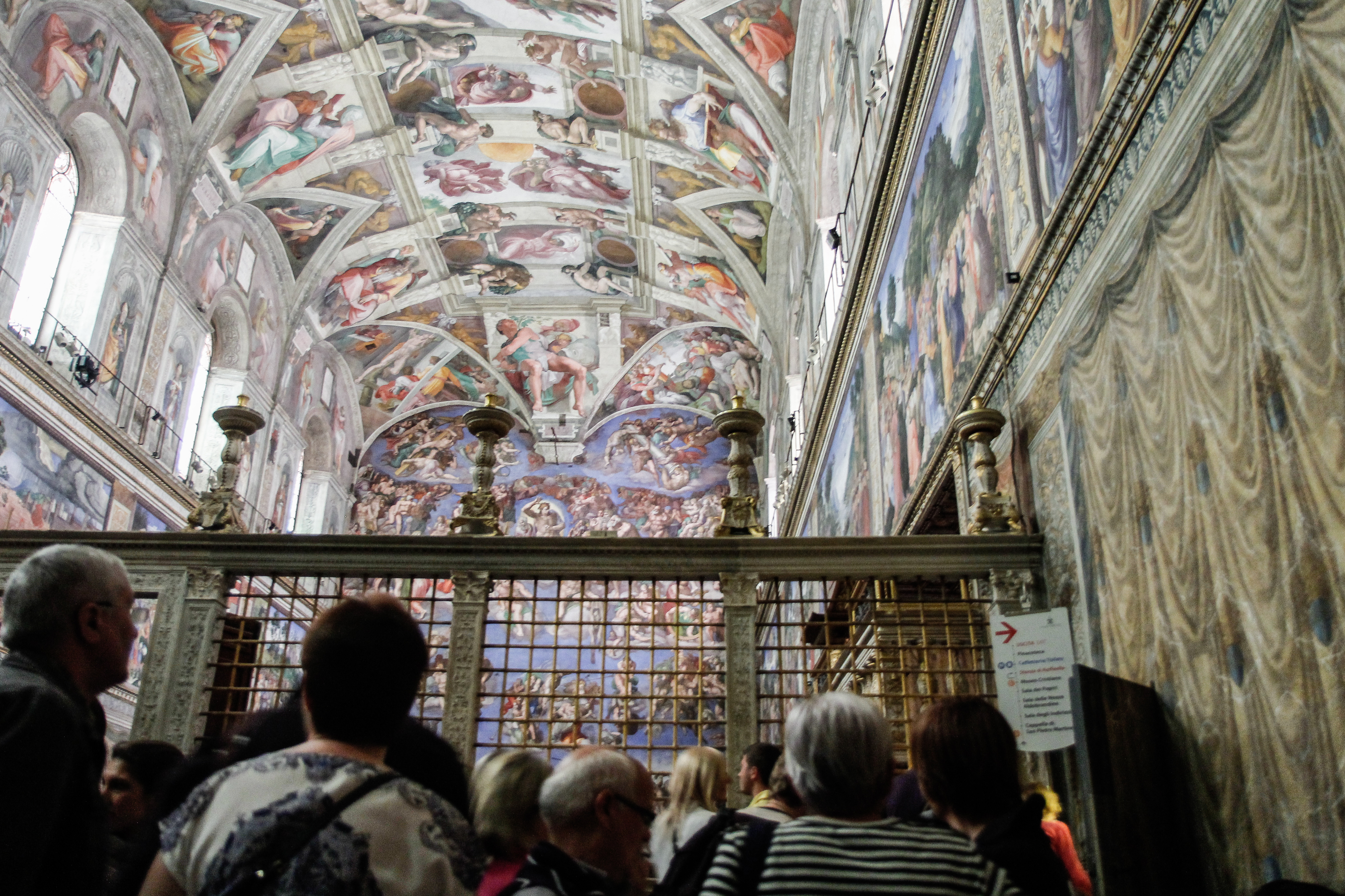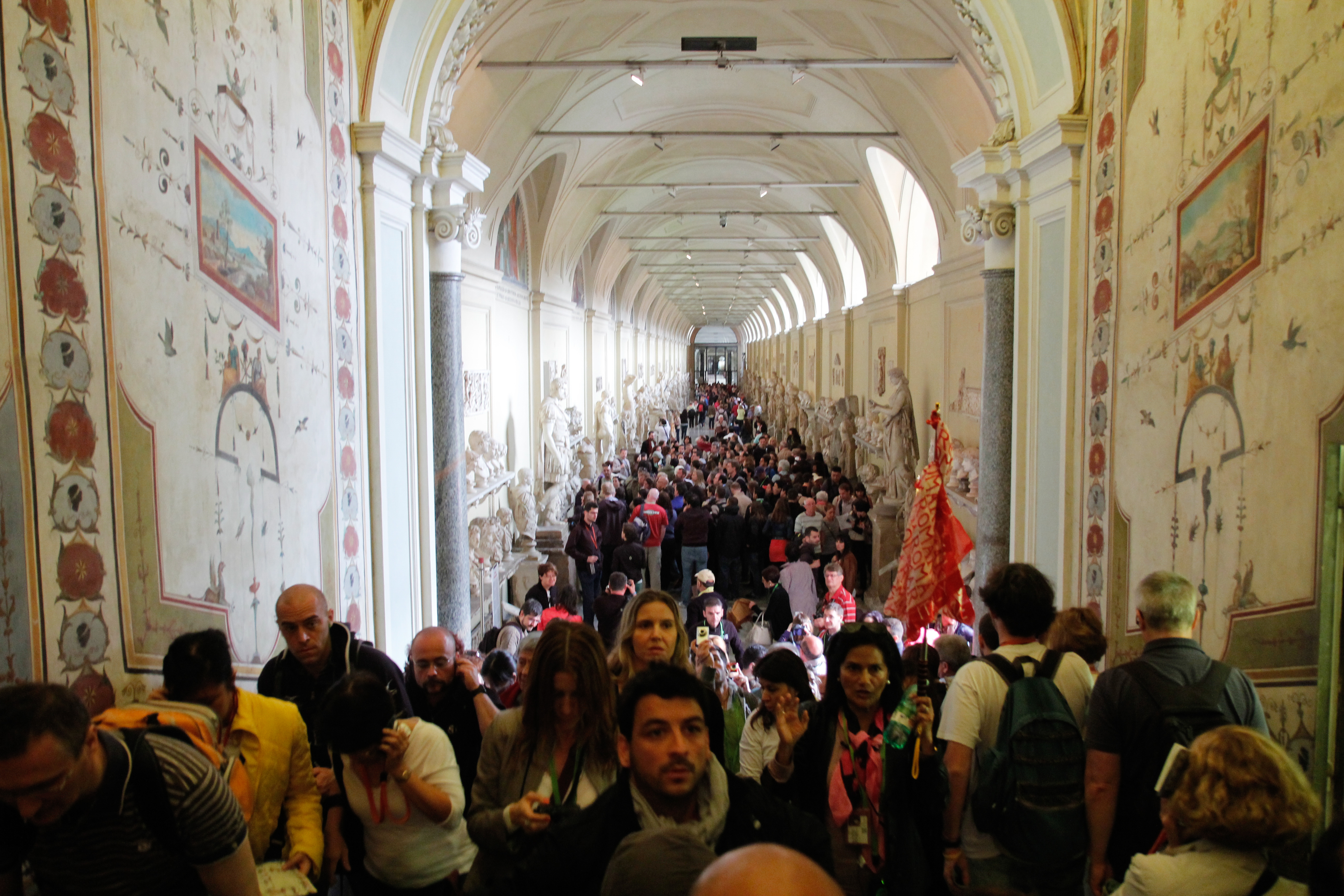 MG 7497The line to visit the Vatican museum wrapped around the block. MG 7507 MG 7519 MG 7520Cupola della Sala rotonda, designed to emulate the Pantheon MG 7525 MG 7530Gallery of Tapestries MG 7532Gallery of Maps MG 7536 MG 7537 MG 7546Sala di Costantino MG 7548 MG 7556 MG 7560Henri Matisse gallery MG 7561 MG 7565Sistine Chapel MG 7566 MG 7570Celestial Globe MG 7572Transfiguration by Raphael MG 7575Caravaggio, Deposition MG 7577Wenzel Peter, Adam and Eve in the Garden of Eden Rome