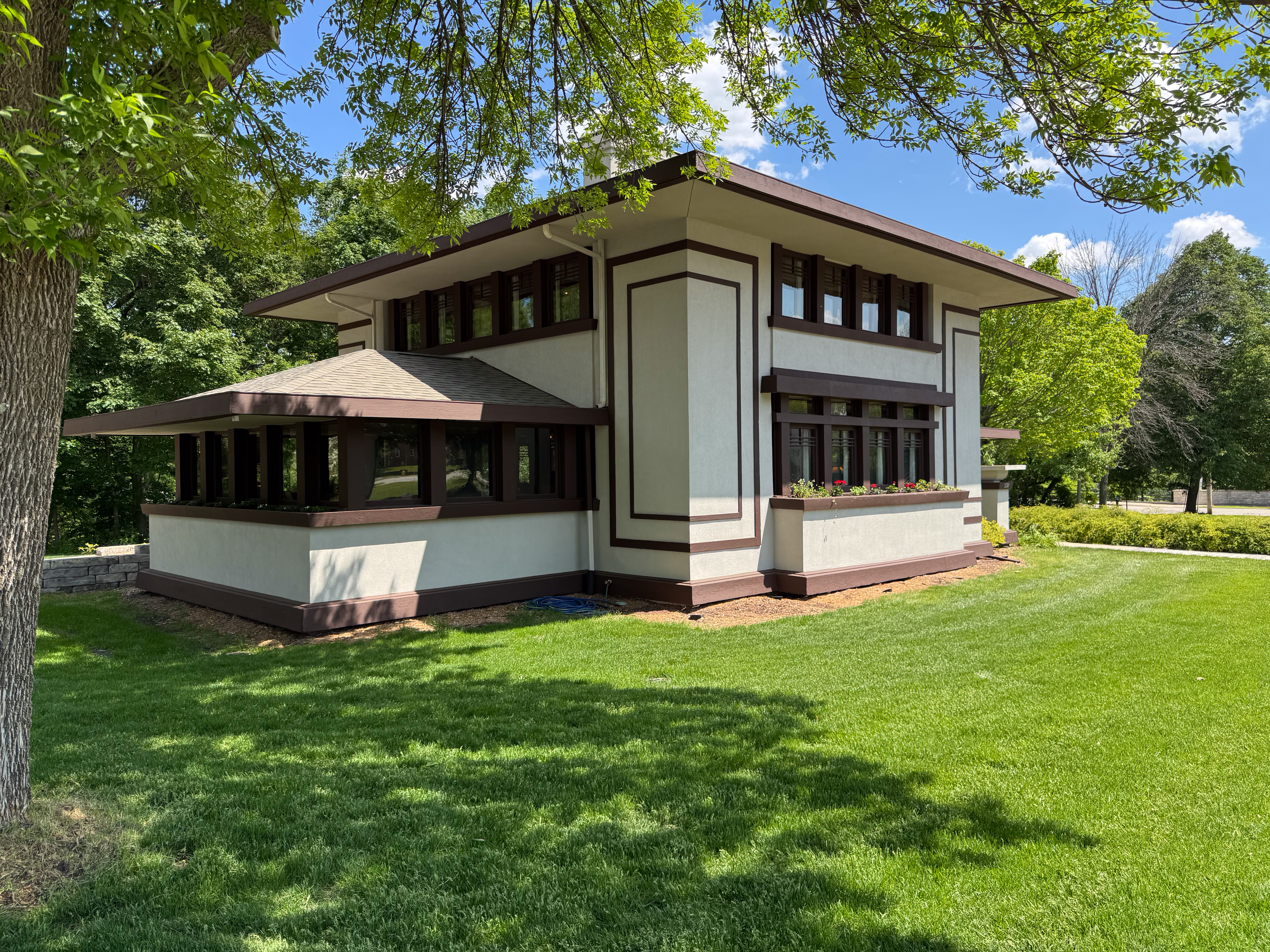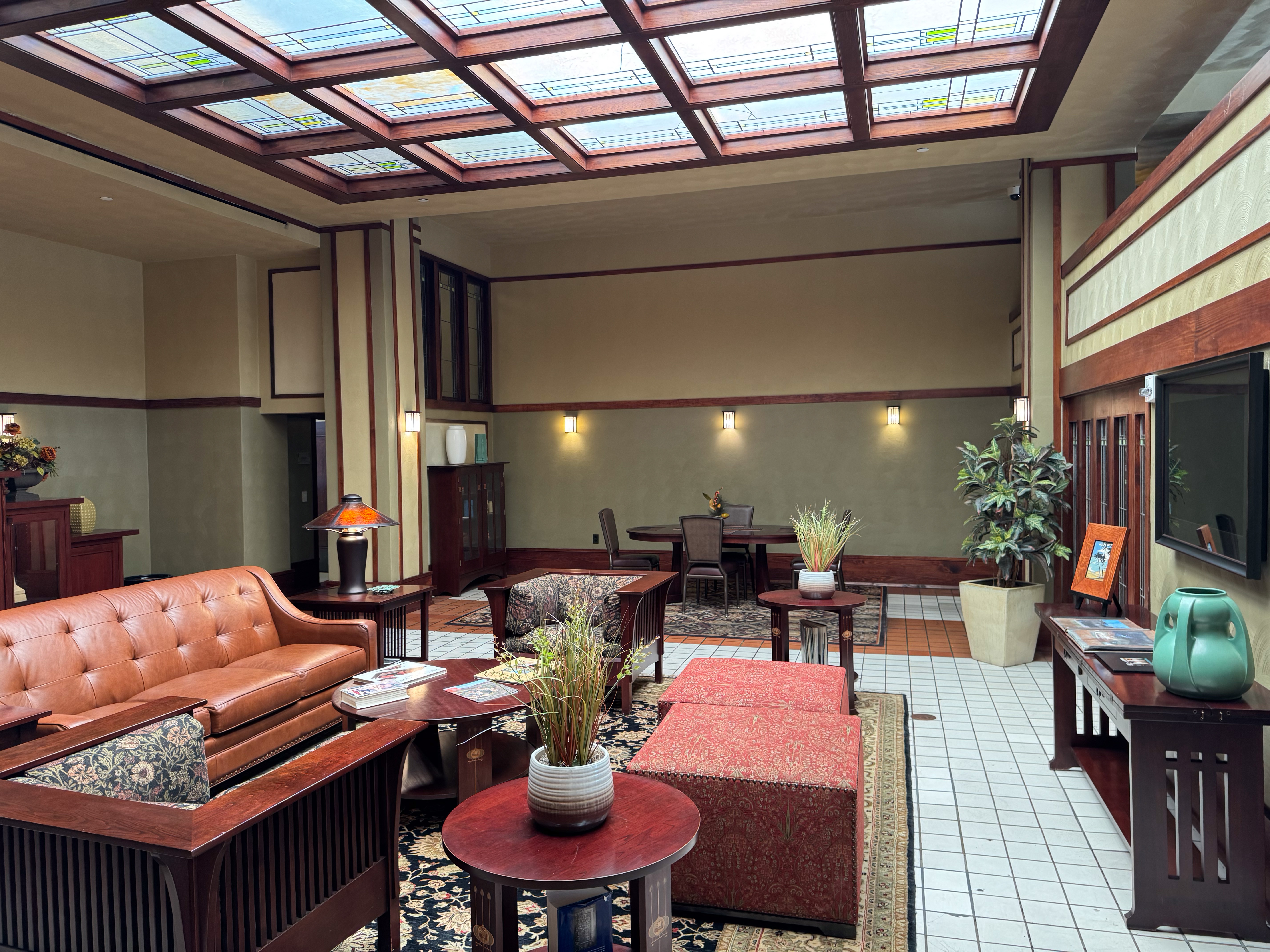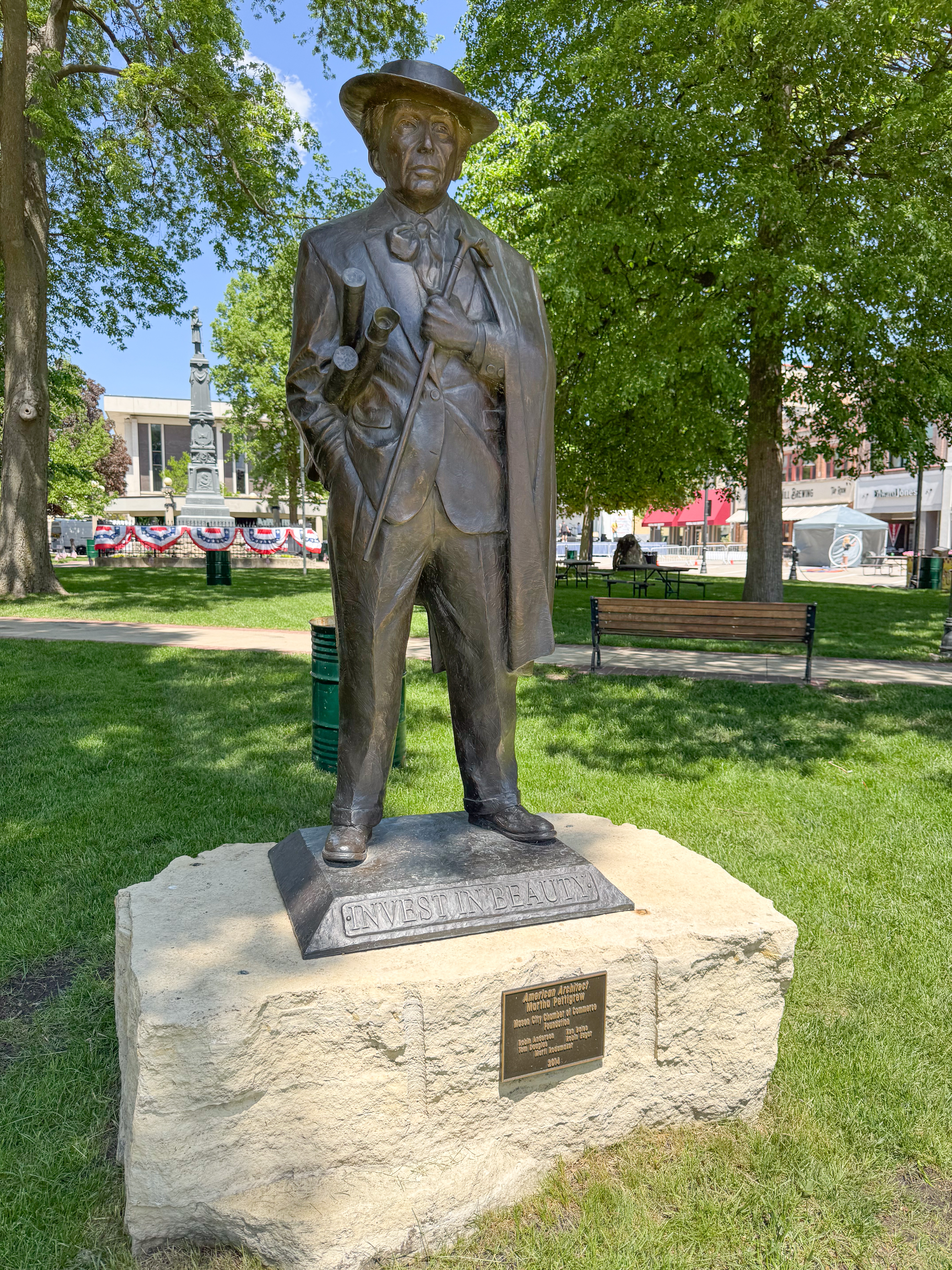 Mason City Iowa is the home of several Frank Lloyd Wright buildings and homes. A statue of him is featured in the park directly across the street from the Park Inn Hotel.