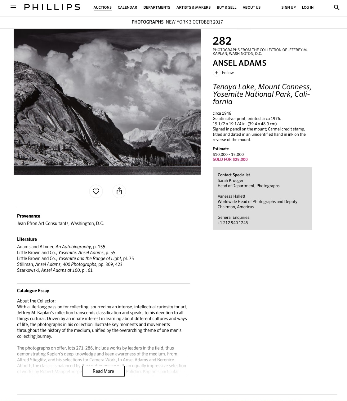 I now possess that Ansel Adams photograph, as I suspect Dad intended all along. I see it as a rare purchase on his part– when I am in similar galleries, I do not easily part with $200 for a work of art unless it speaks to me in some way. I’m not sure that picture spoke to my dad in 1972, but he saw that it spoke to me, and he made the choice to spend a sum far beyond his limits in order to acquire it. Today, as I am preparing to display it in my home. I looked up what this print might be worth. A slightly larger version of it, printed at around the same time, and signed in the same way, recently sold at auction for $25,000. Collector’s prices are irrational, but it is satisfying to learn that in our youth and ignorance, we recognized an artistic effort and beauty that would eventually be acknowledged and valued so highly.