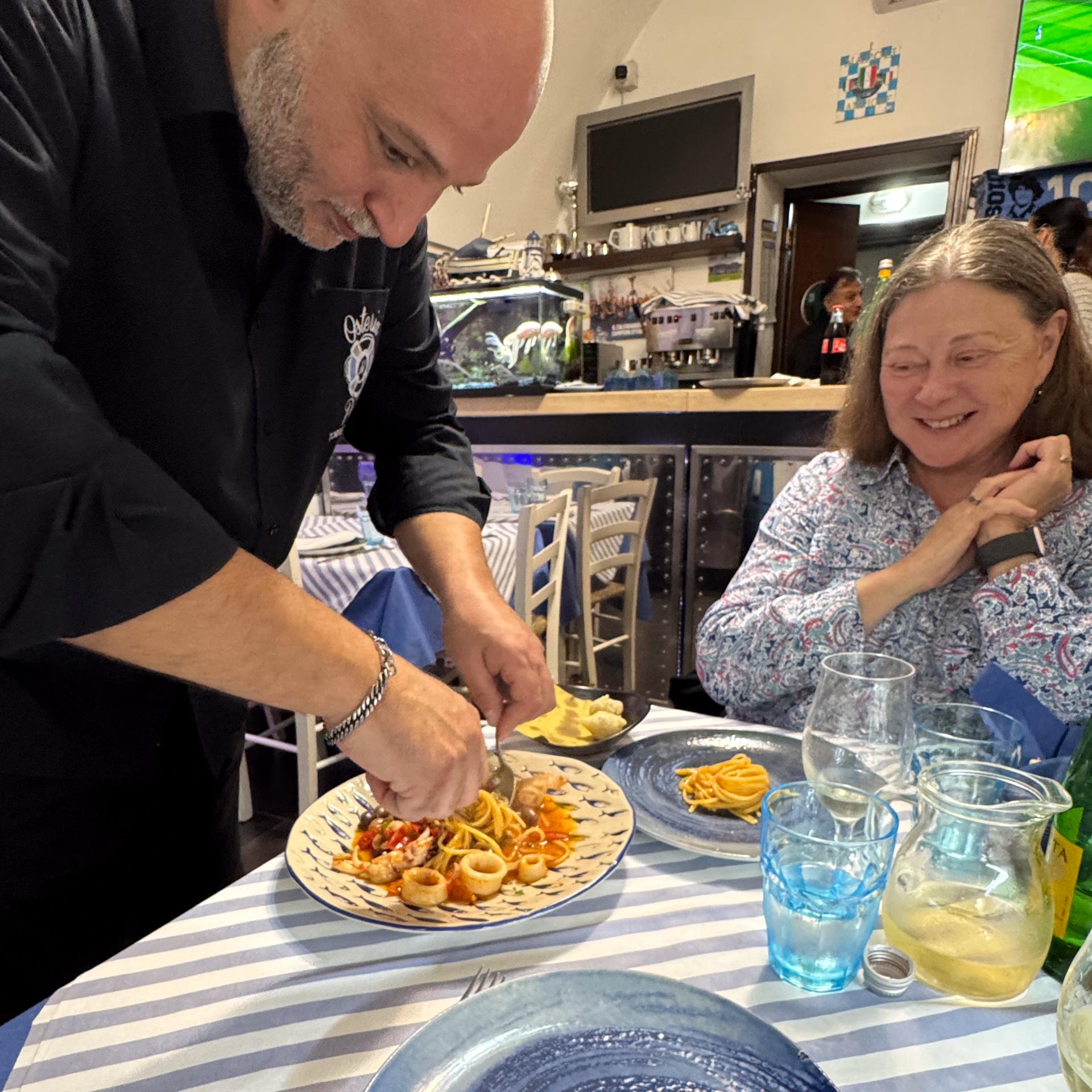 When traveling in Italy, I am aware of the cultural differences in subtle ways. I notice that the urban landscape is not littered with franchise restaurants. Yes, McDonald’s has a presence, but it is a small one. There do not appear to be nationwide Starbucks or Dairy Queen-equivalent chains; instead, local proprietors set up espresso bars and gelato shops. When Italians go out to eat, they don’t ask what ethnic cuisine to seek. There are few non-Italian options (mostly Asian), because Italians just can’t find anything better than their own. And they have good reason to think so.